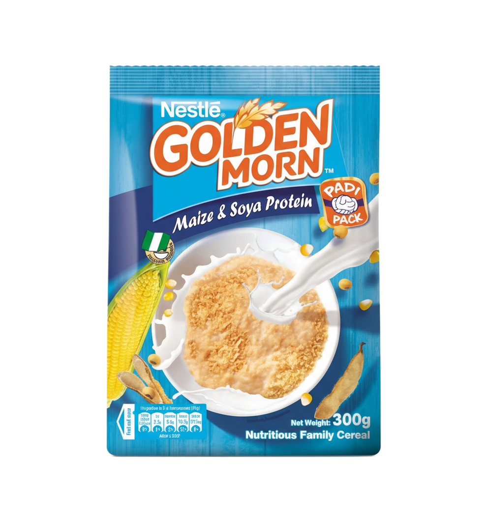 Start your day the golden way with Nestlé Golden Morn, a delicious and nourishing cereal made from wholesome maize and soya protein. Packed with essential vitamins and minerals, Golden Morn provides the energy and nutrition your family needs to stay active and strong every day.